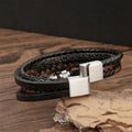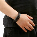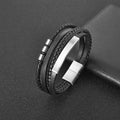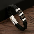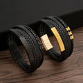 Mastering the layered look has never been easier. The Midnight Stack combines the rugged texture of braided leather with sleek, matte black stainless steel accents to create a complex visual profile in one simple accessory.