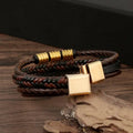 Complex Textures: Features a mix of braided and smooth leather strands, punctuated by industrial steel rings and a central ID plate for a dynamic, masculine look.